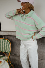 Pull Odette vert à lignes roses